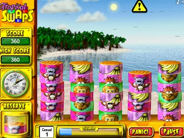 Tropical Swaps is a colorful tropical puzzle game where you swap stacked tiles to recreate full animal totems before the board overflows. Match toucans, singes, perroquets, tortues and more as new pieces fall faster with every move. Use bombs, special tiles, and quick thinking to clear space, chain combos, and push your score higher. With multiple difficulty levels and fast‑paced stacking mechanics, Tropical Swaps delivers an addictive mix of logic, speed, and strategy perfect for fans of classic puzzle challenges.